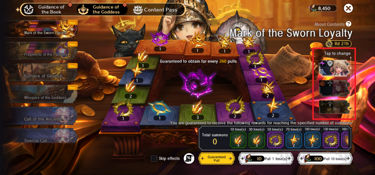 - Blackaria, alongside her Signature Weapon “Snow Savage,” can be obtained via Call of the Stars. While her Signature “Conviction of Death Halo” and her Signature “Awakened Beast El Cid” can be obtained via “Mark of the Sworn Loyalty” and “Fragments of the Painting” respectively, which can be found on the “Guidance of the Goddess” menu.