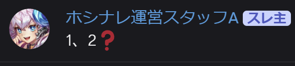 ・例) KRJPTW / ホシナレ運営スタッフA / 1、2❓