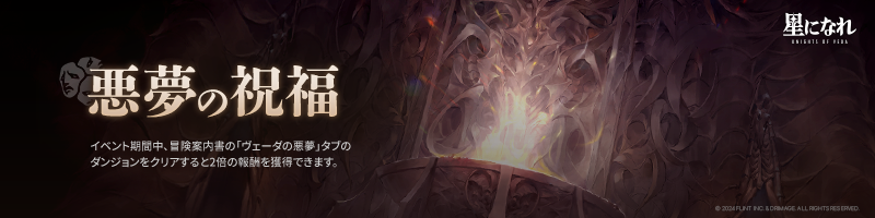ヴェーダの悪夢のクリア報酬が2倍獲得できる「悪夢の祝福」イベントについてご案内いたします。