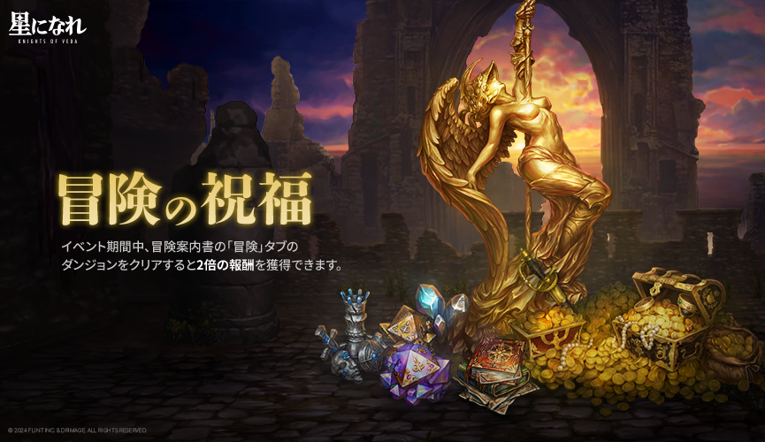 ダンジョンクリア報酬が2倍獲得できる「冒険の祝福」イベントについてご案内します。