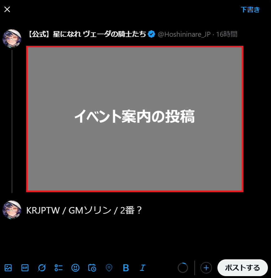正解の番号を公式Xのイベント投稿にリプライする、参加型イベントです。