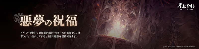- イベント期間中に「ヴェーダの悪夢」のダンジョンをクリアすると、報酬が2倍になります。