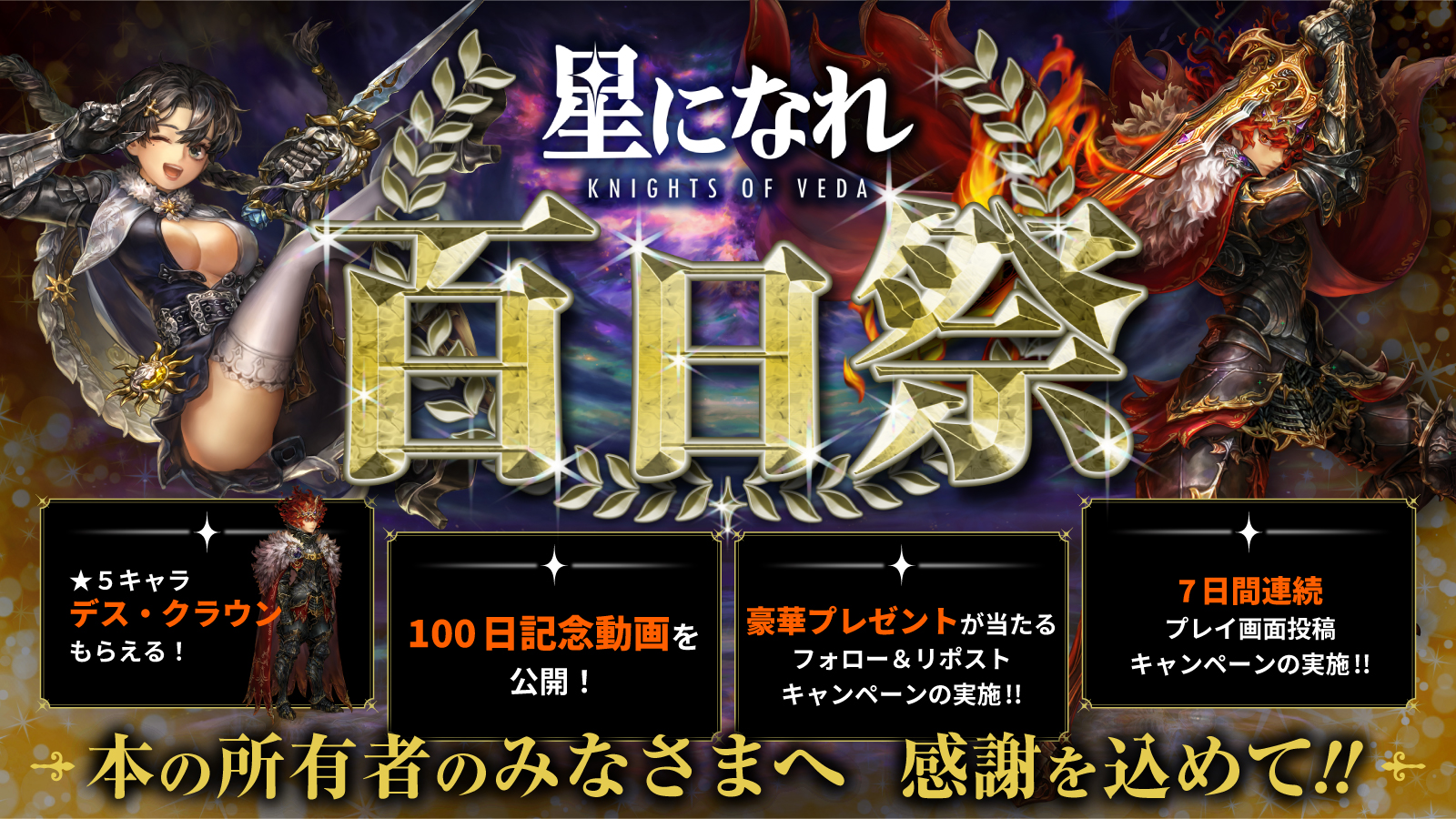 『星になれ ヴェーダの騎士たち』サービス100日を記念した#ホシナレ100日祭を開催します!