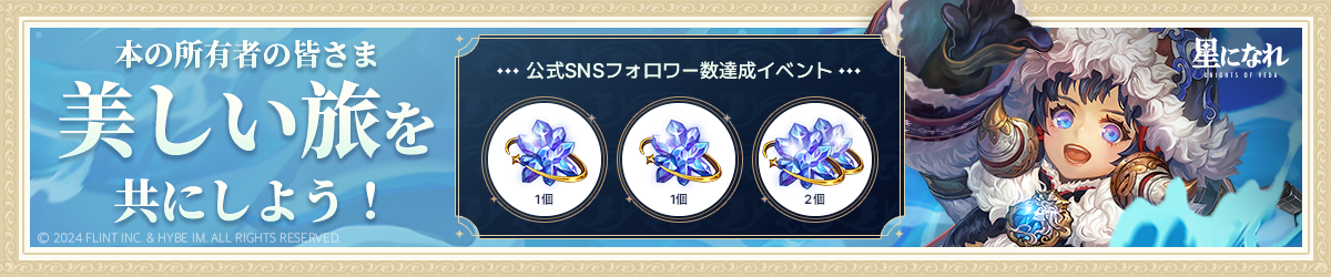 - フォロワー数達成は、本文内に記載されている「星になれ ヴェーダの騎士たち」公式SNSアカウントのフォロワー数に基づきます。