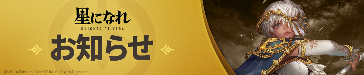 いつも『星になれ ヴェーダの騎士たち』をご利用いただき、誠にありがとうございます.