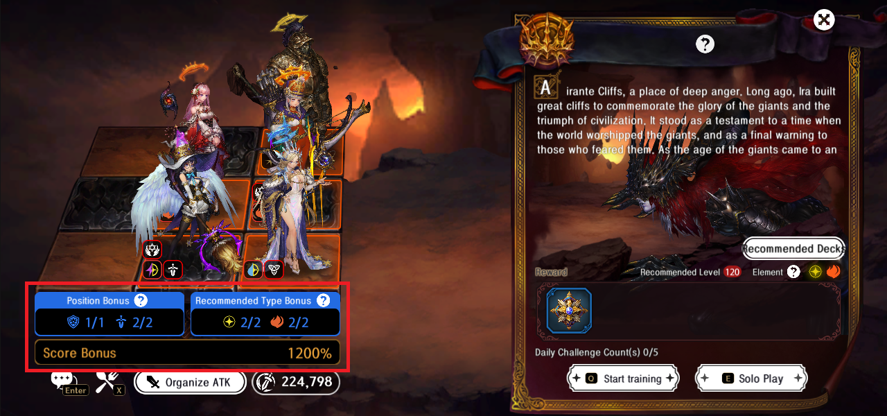 - 太古の巨人のボスにチャレンジする際、指定のポジションとおすすめ属性を満たすと、高いスコアボーナスを獲得できます。