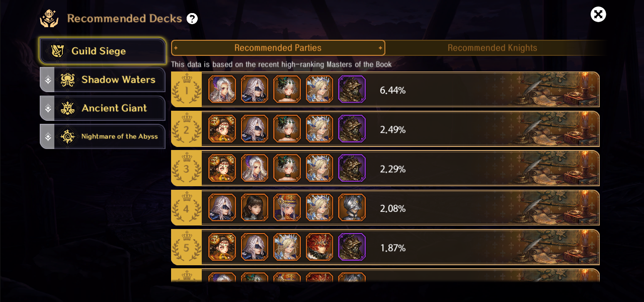 また、主要なコンテンツで使用する騎士を一目で確認できる
