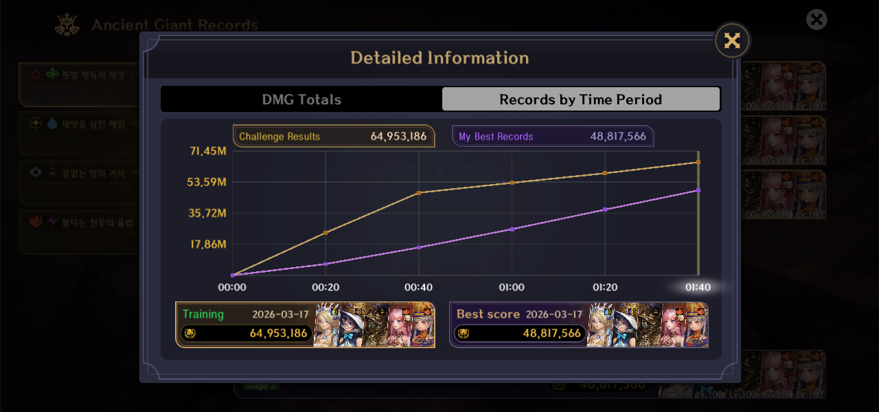 指定の条件に合わせたパーティー編成で挑む「太古の巨人」では、チャレンジスコアの推移をすぐに確認でき、