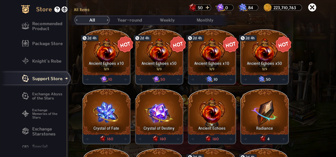 靴の最大チャージ量60個増加 靴のチャージ時間72秒短縮 冒険/悪夢ダンジョンでのゴールド獲得量20%増加 ショップにて星の記憶で交換できる回数2回増加 |