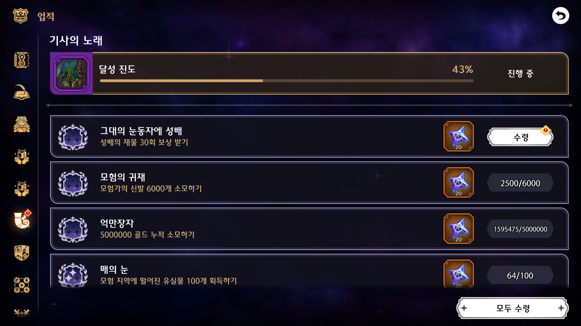 또한 다양하고 수많은 업적들을 클리어해서 별석을 획득하실 수 있습니다.