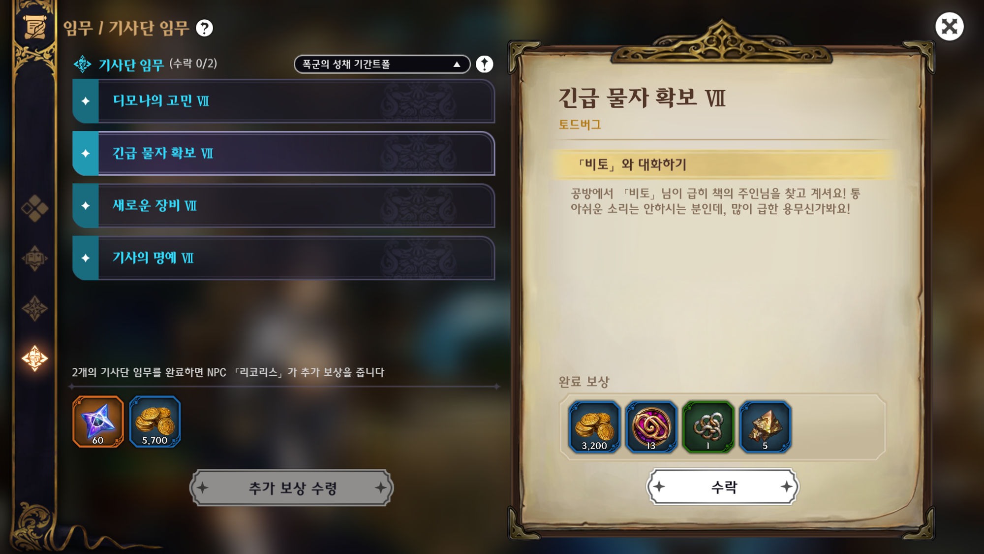 다양한 임무를 통한 재료 수급