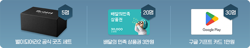 - '배달의민족' 상품권 3만원권 : 20명