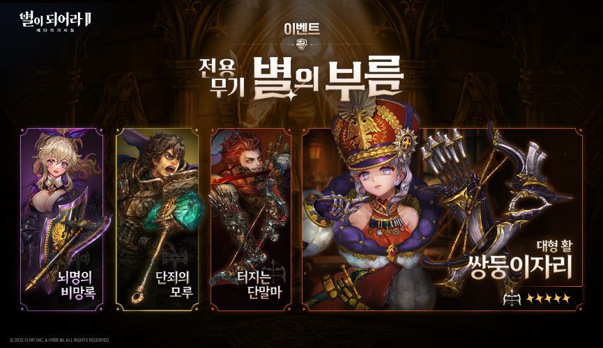 : ‘쌍둥이자리(대형활)’, ‘뇌명의 비망록(도끼&방패)’은 추후 상시 별의 부름에 추가되지 않습니다.