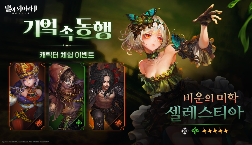 : 이벤트 캐릭터인 ‘비운의 미학 셀레스티아’, ‘타오르는 유산 도로테아’는 추후 상시 별의 부름에 추가되지 않습니다.