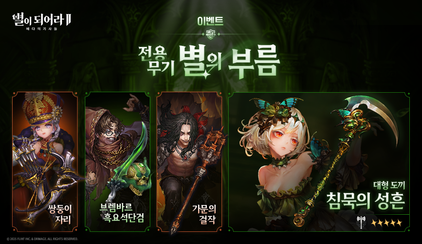 : ‘침묵의 성흔(대형도끼)’, ‘쌍둥이자리(대형활)’는 추후 상시 별의 부름에 추가되지 않습니다.