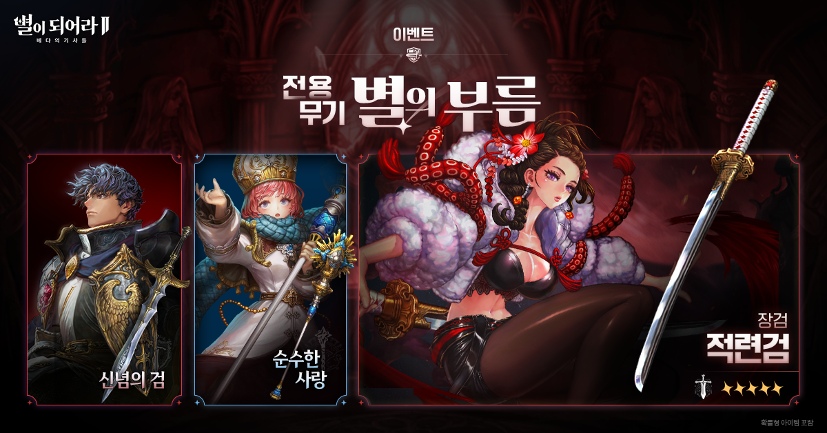 : 이벤트 무기인 ‘적련검(장검)’은 추후 상시 별의 부름에 추가되지 않습니다.