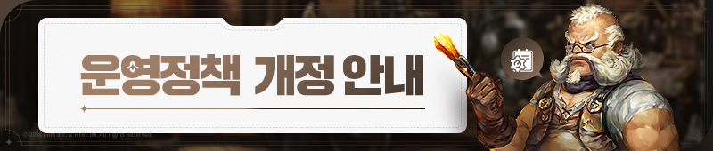 운영정책 개정의 적용일인 2024년 10월 10일(목)까지 동의 또는 거부 의사를 표시하지 않으시는 경우 본 개정 약관에 동의하신 것으로 봅니다. 개정 약관에 동의하지 않으시는 경우 게임 서비스 탈퇴를 요청하실 수 있습니다.