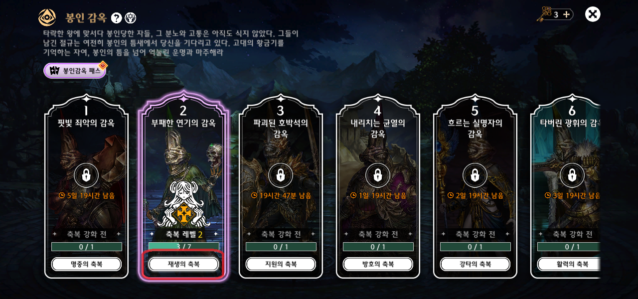- 또한, [봉인 감옥]의 축복 레벨을 확인하실 수 있습니다.