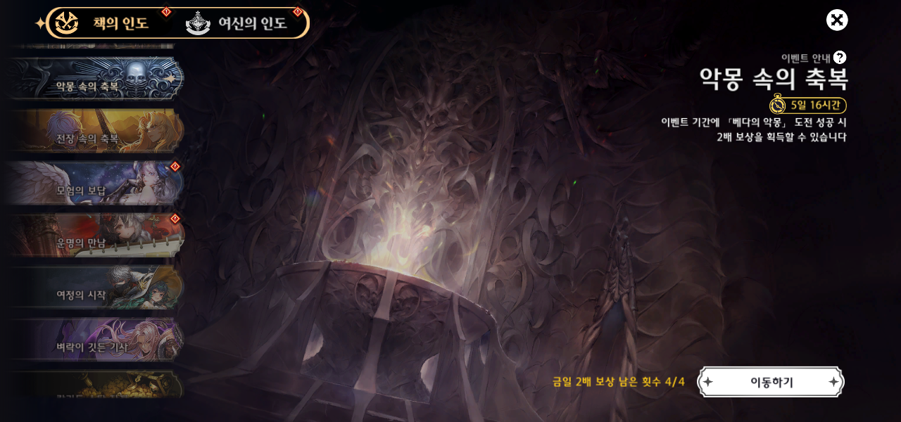[깊은 심연의 악몽] 보상을 2배로 지급하던 [악몽 속의 축복] 이벤트가 매일 4회 도전으로 강화되었습니다.