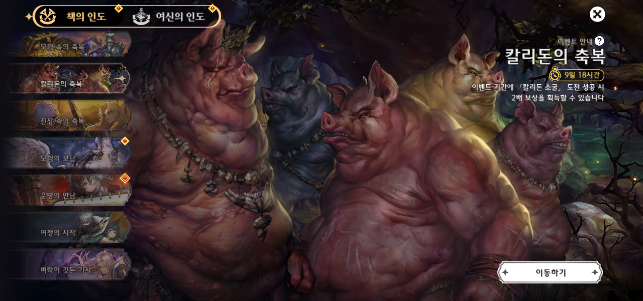 - 이벤트 기간 동안 [칼리돈 소굴]을 클리어 하시면 골드 보상을 2배로 지급하여 드립니다.