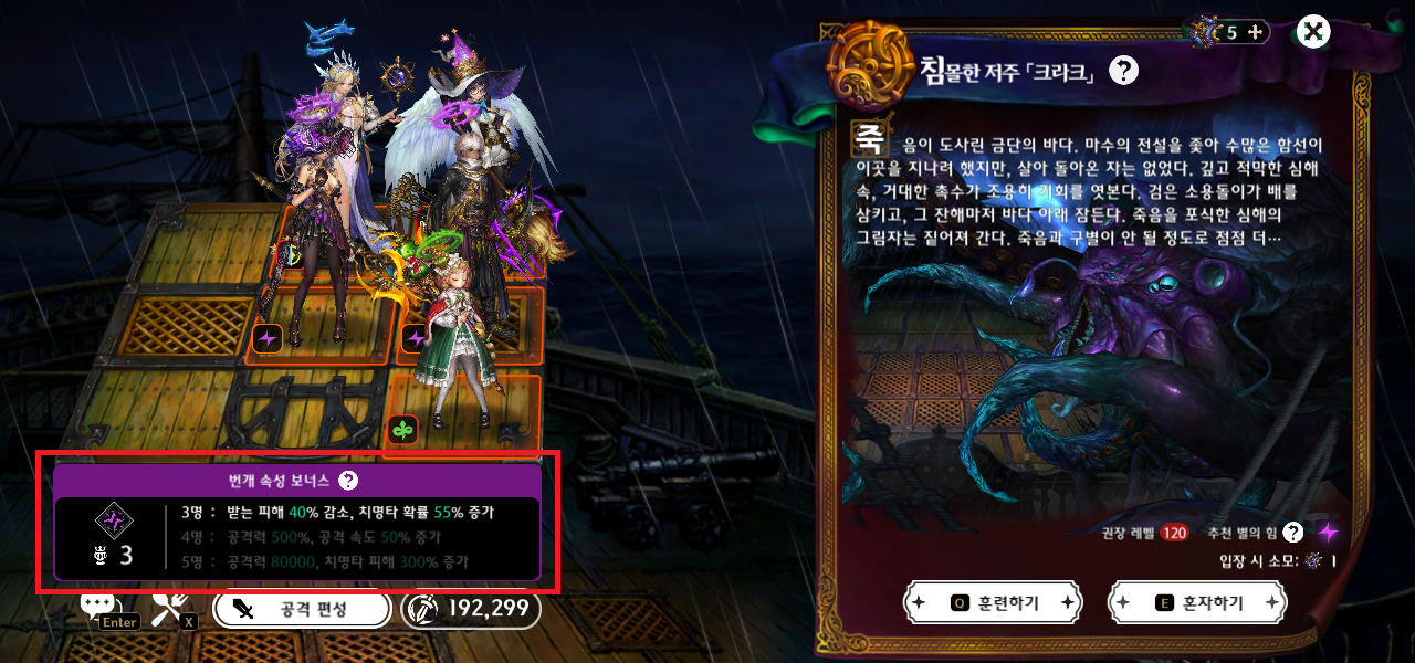 받는 어둠 속성 피해 3%, 어둠 속성 공격력 증가 5% |