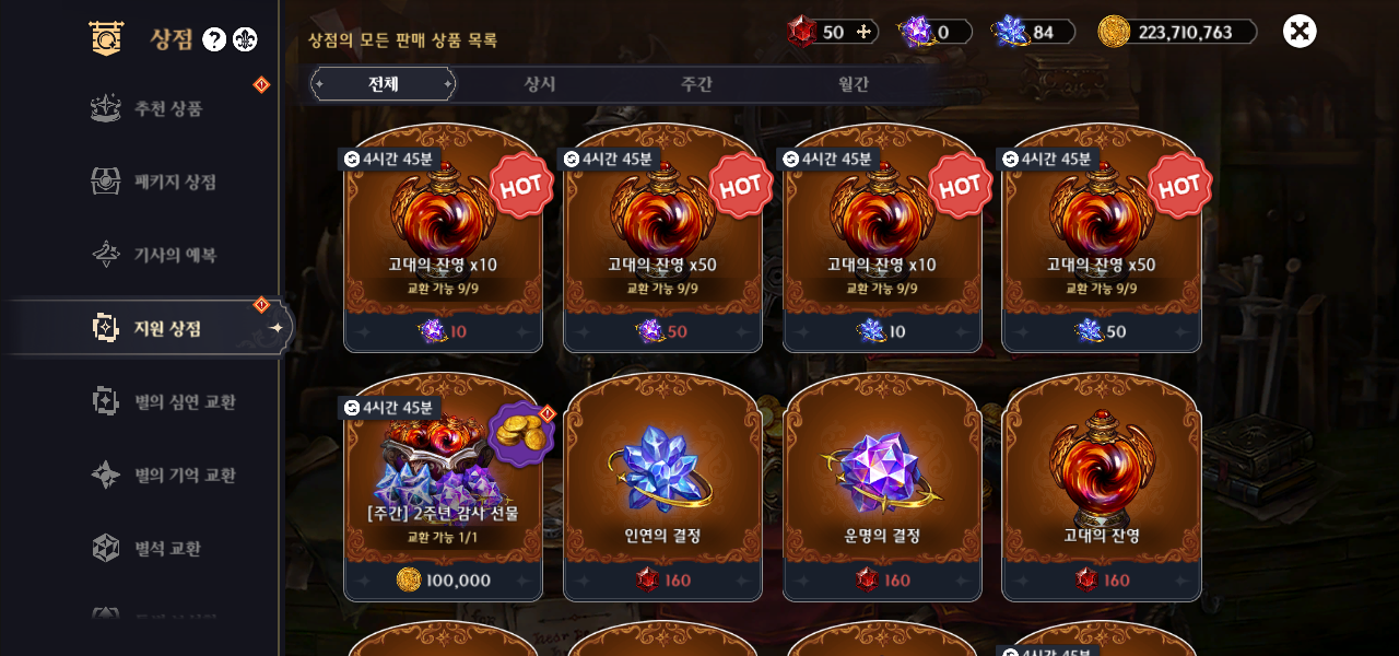- 푸짐한 [운명의 결정], [성역의 결속], [고대의 잔영], [블랙헤븐 & 전용 무기 선택권] 등을