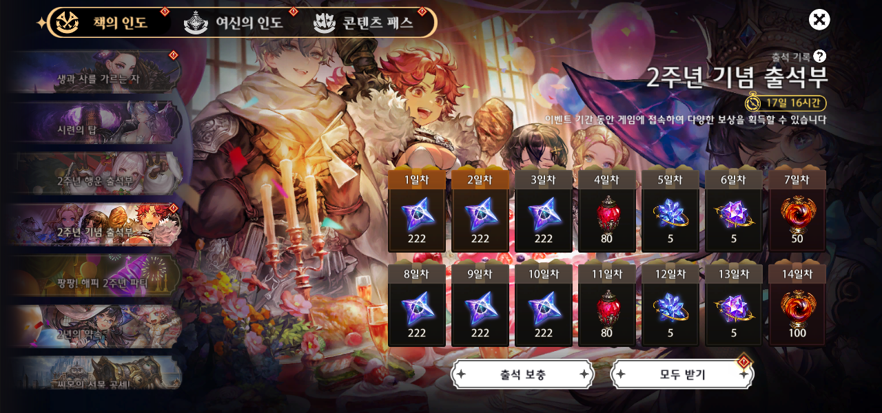 - 이벤트 기간 동안 출석한 횟수에 따라 푸짐한 보상을 획득할 수 있는 [출석 기록, 모험의 보답] 이벤트가 진행됩니다.