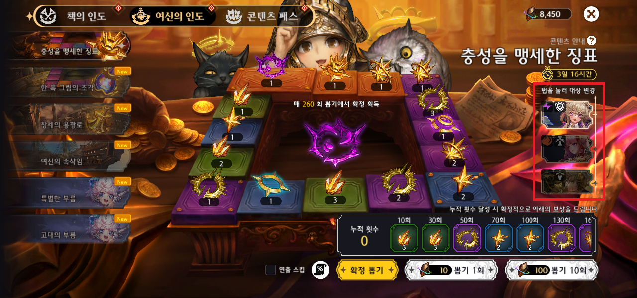 주어진 조건에 맞는 파티 구성으로 도전하는 태고의 거인에서는 도전 점수 추이를 바로 확인할 수 있으며,