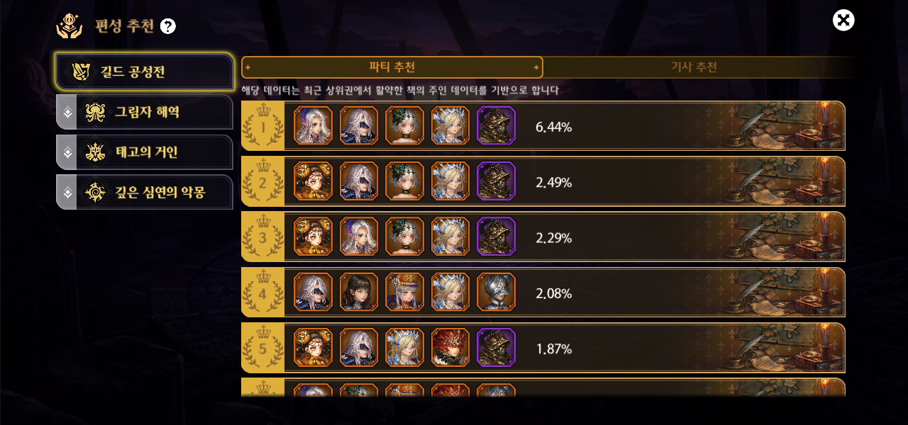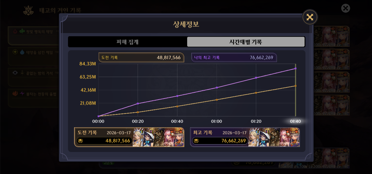 - 플레이했던 파티의 정보와 최고 기록 달성 시의 파티 정보를 확인할 수 있습니다.