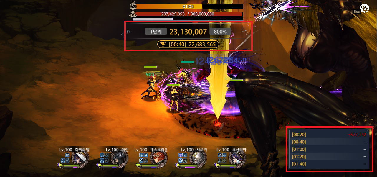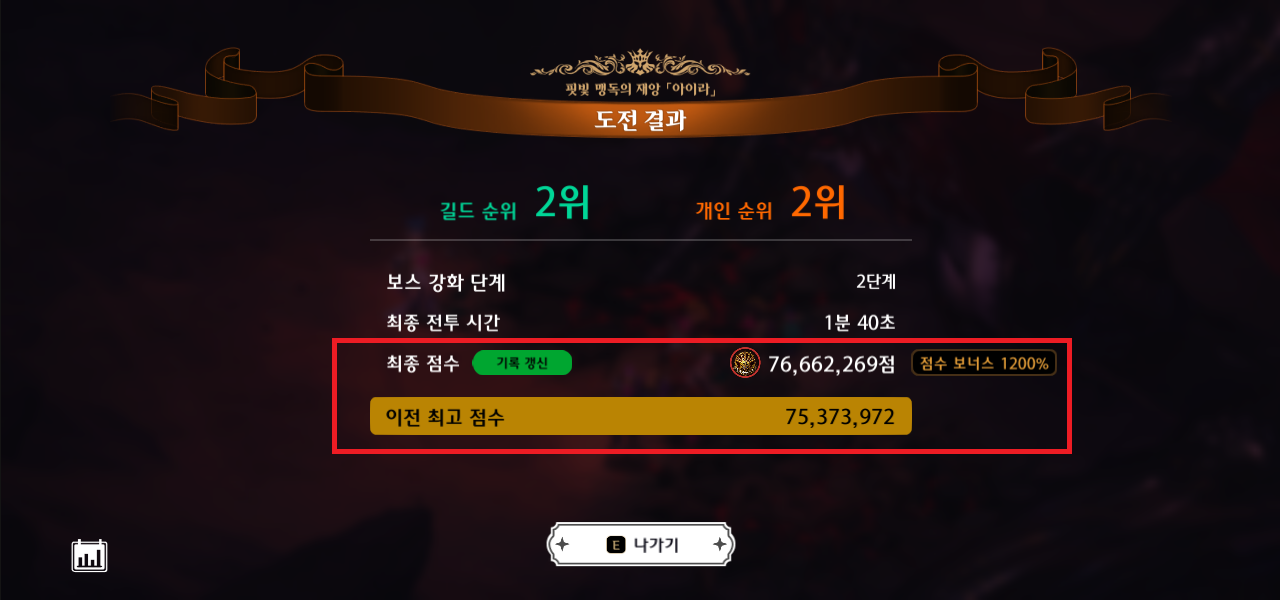 - 또한, 최고 점수와 현재 플레이한 점수를 시간 단위로 비교할 수 있도록 하여 파티 구성의 기준을 세울 수 있도록 하였습니다.