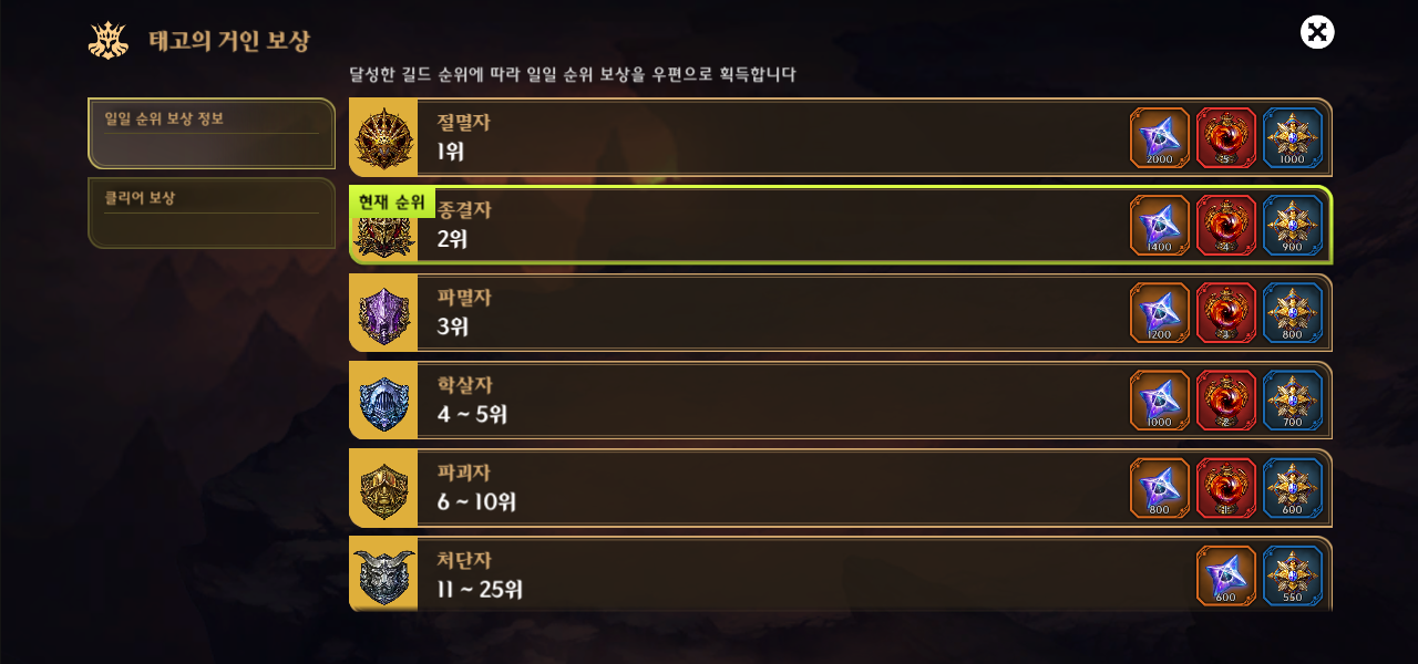 ■ 태고의 거인 시즌 2 랭킹 및 보상