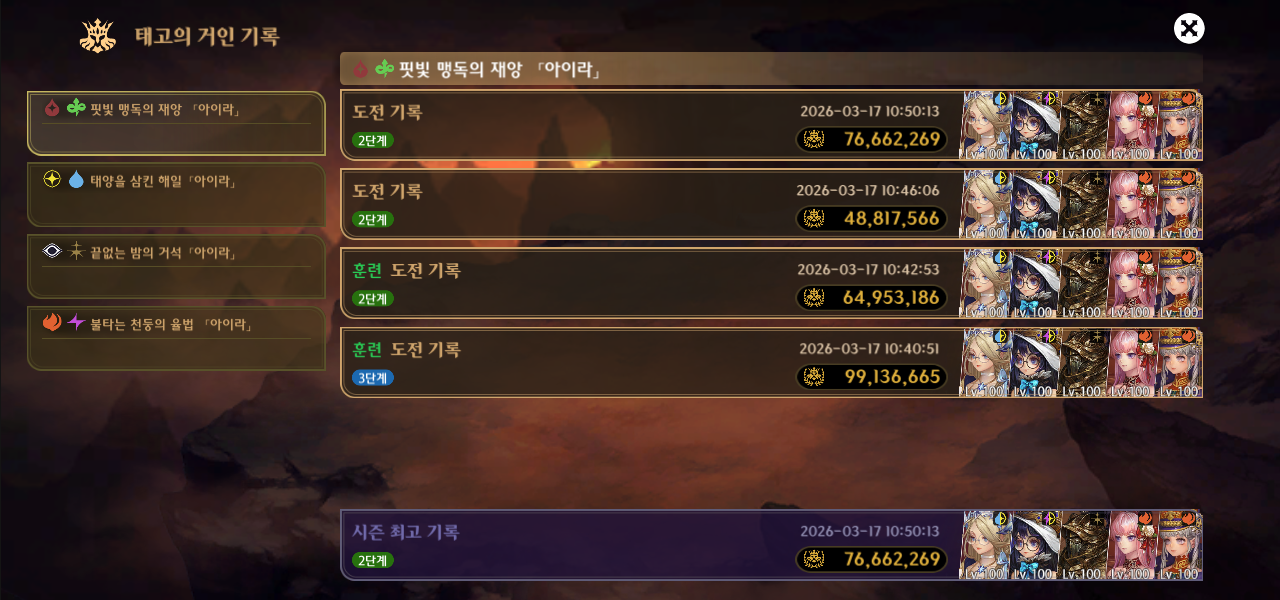 * 태고의 거인 전투 시 기록했던 최고 기록이 저장됩니다.