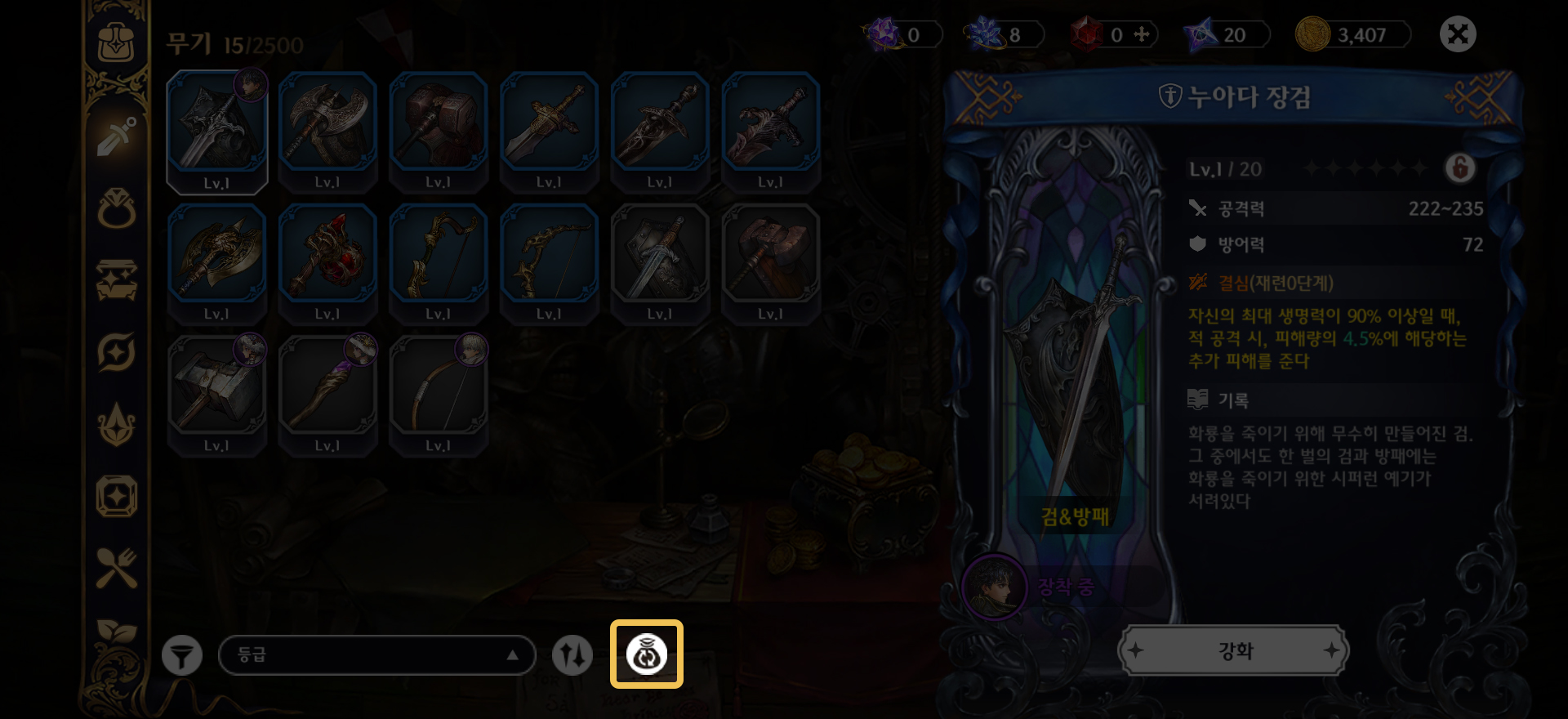 - 장비 분해 시, 분해할 장비를 강화 재료로 사용 시 부여되는 경험치 양만큼 강화 재료로 환산하여 지급됩니다.
