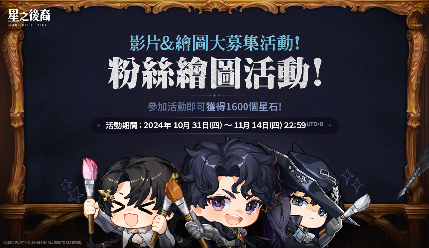 上傳至SNS/YouTube,並務必加上Hashtag主題標籤 (#星之後裔Knights of Veda_粉絲繪圖)。