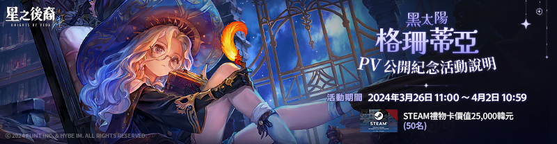 - 黑太陽格珊蒂亞 PV 發布慶祝貼文分享突破活動獎品將於達到目標分享數發送至遊戲內信箱,發放完成將透過本公告通知。