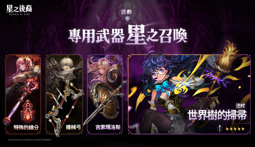 4星吠陀騎士「岩科」、「馬泰爾」及專屬武器星之召喚機率也將有所提升,