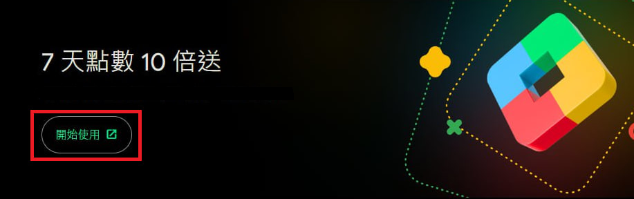 3) 執行並點擊Google Play Games內「7天點數10倍送」優惠橫幅下的「開始使用」
