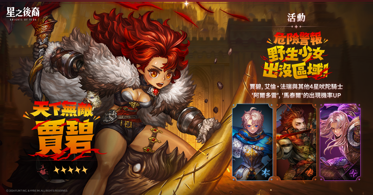 活動間內,可以高機率召喚5星吠陀騎士「天下無敵 賈碧」和「波動之劍 艾倫·法瑞」,